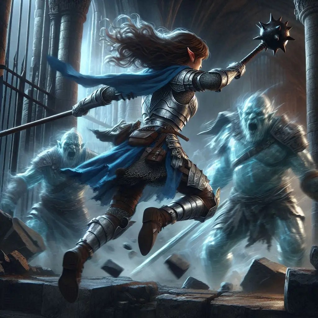 Wendelin is the smallest of the warriors, but as an Undead Hunter she was in her element here. Two shaded ogres, she’s got this.
