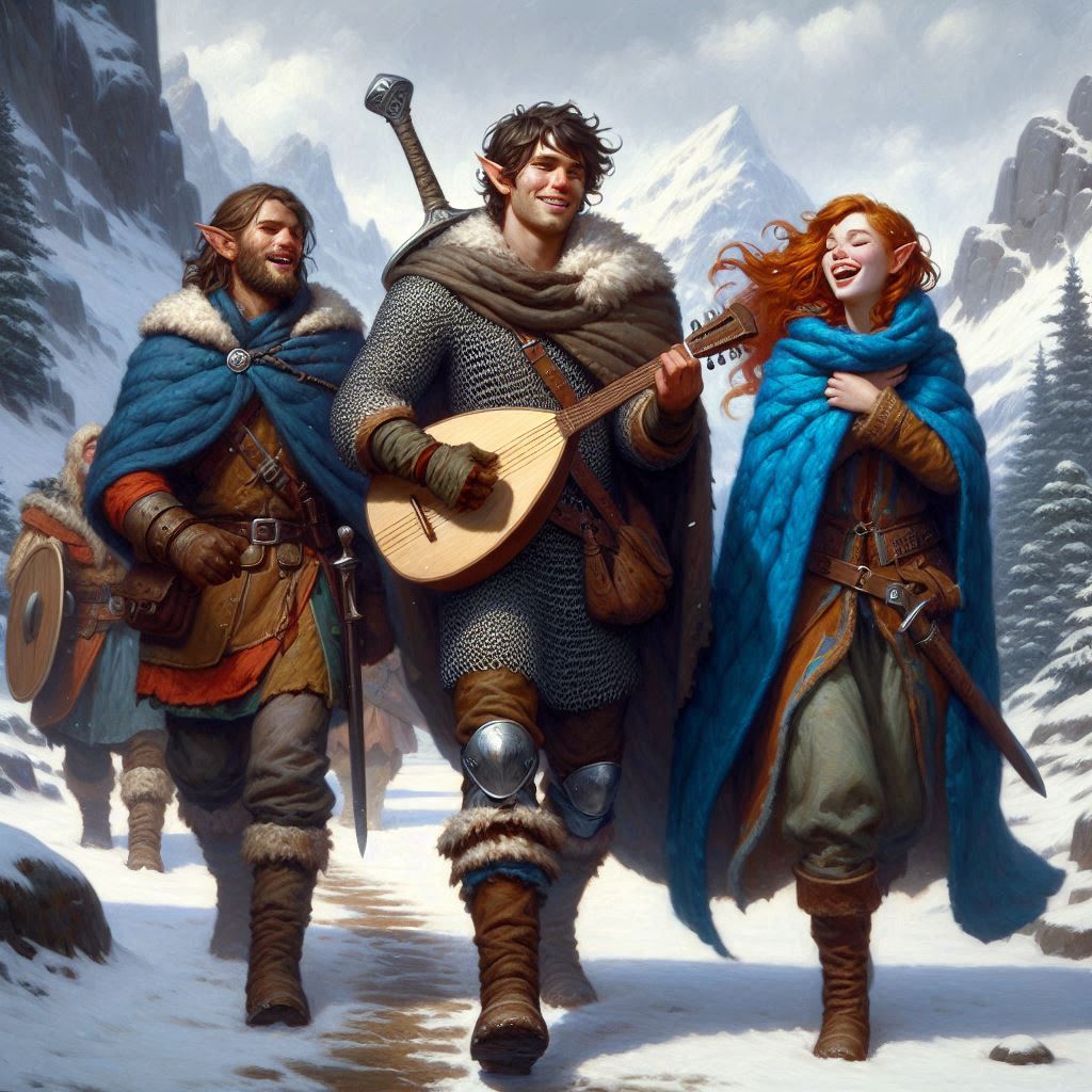 It been a long time since I’ve used an unkitted bard, very useful class. Sure, they won’t rack up a big number of kills. I have him loaded with mostly buff spells. He sometimes opens a battle with a spell or two (mainly Fireball), then sings. Just an FYI, when an unkitted bard hits 11th level they get War Chant of the Sith. This really amplifies the power of your whole team, a nice combat bonus and regeneration. Only healing the Cleric has to do is emergency healing in combat, the bard heals the team quite quickly. So the team hits hard and goes a long time between rests. He also gets the Elven Chain Mail, the image works perfectly for me.