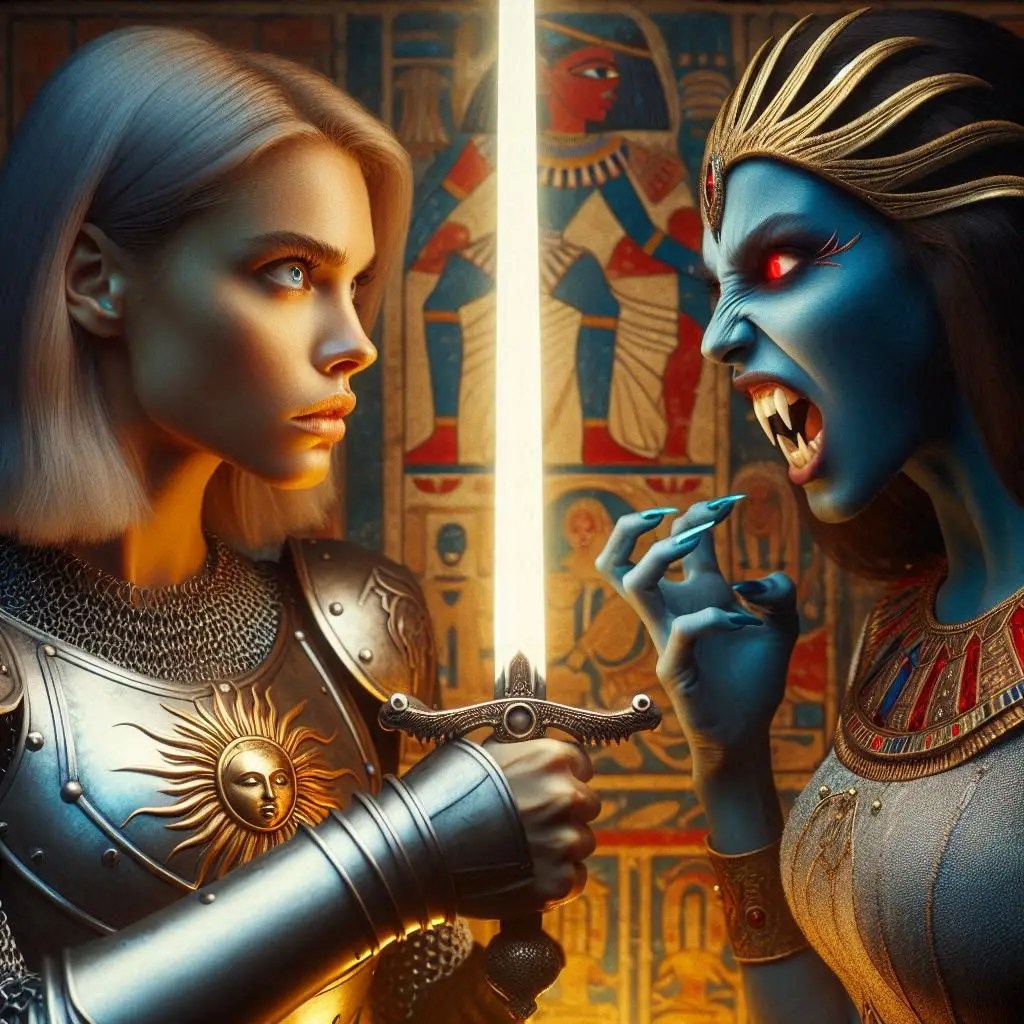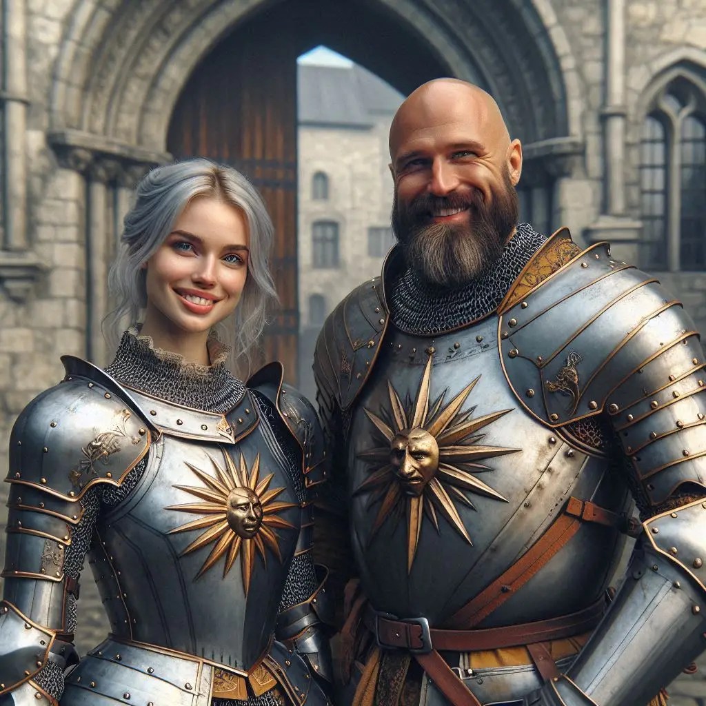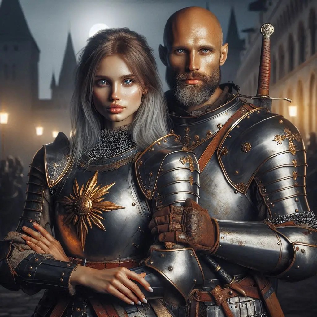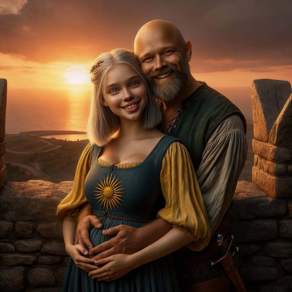 For Gabby there are two different AIs in use. The first of her sword training and her game portrait are OpenArt, the others are Co-Pilot/DallE. The treatment of the hair is notably different between the two. As is often true, I like the consistency and photo-realism of OpenArt, but I prefer the overall mood and vibrancy with Co-Pilot. It is funny how the two AIs understand “shoulder length hair” differently! And even the color. But they represent a couple years of time there, women do change their hair!