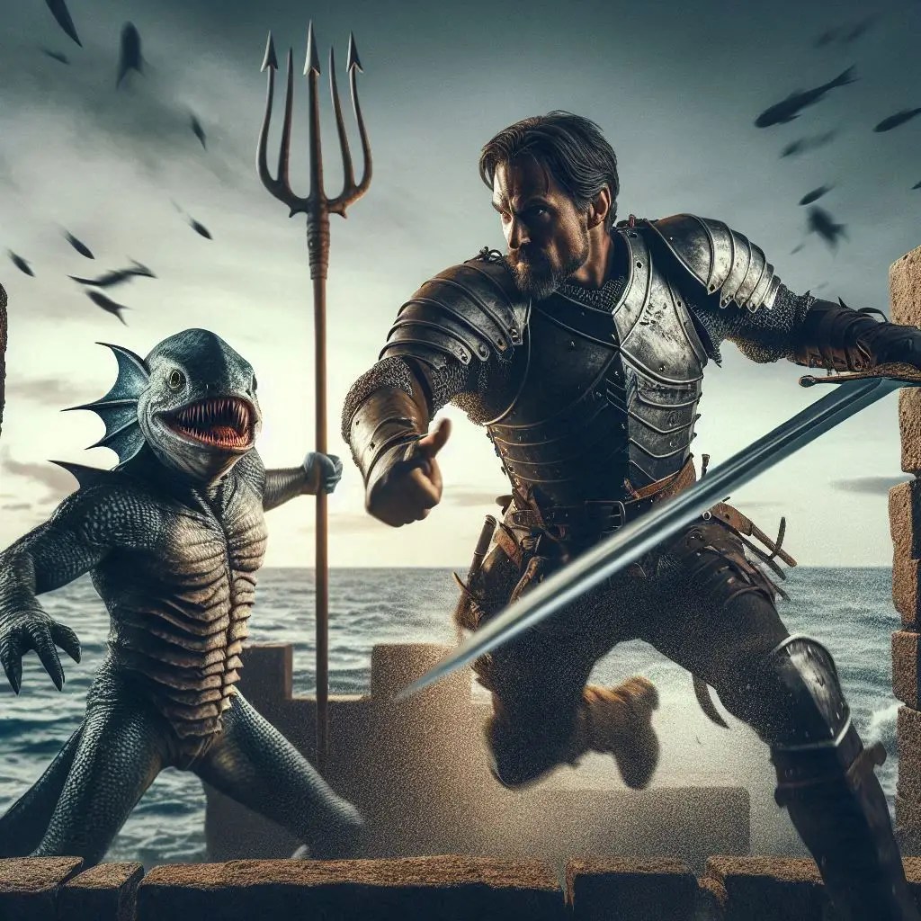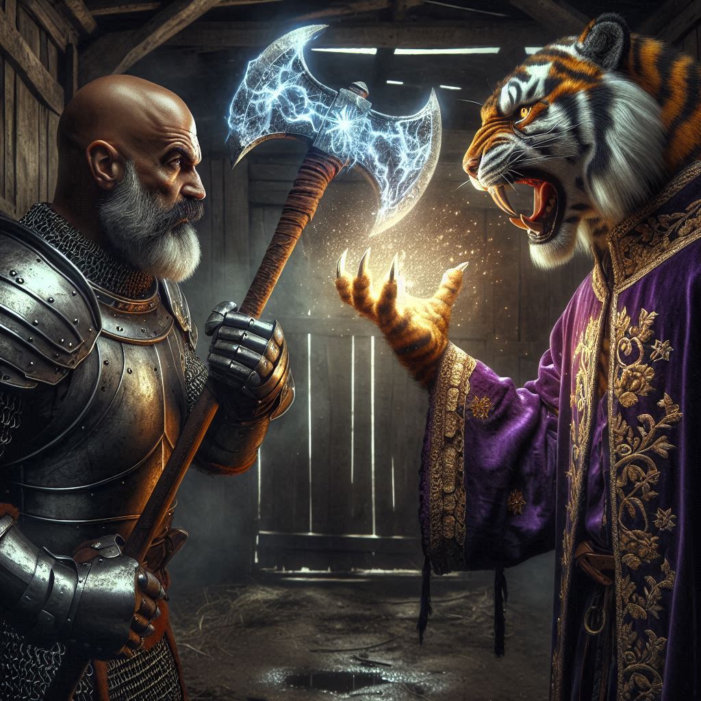 It was hardly surprising when we did finally encounter Firkraag. He had some conflict with my father, my real father Gorion, from many years back. He still wore a nasty scar from that encounter. [DALLE]
