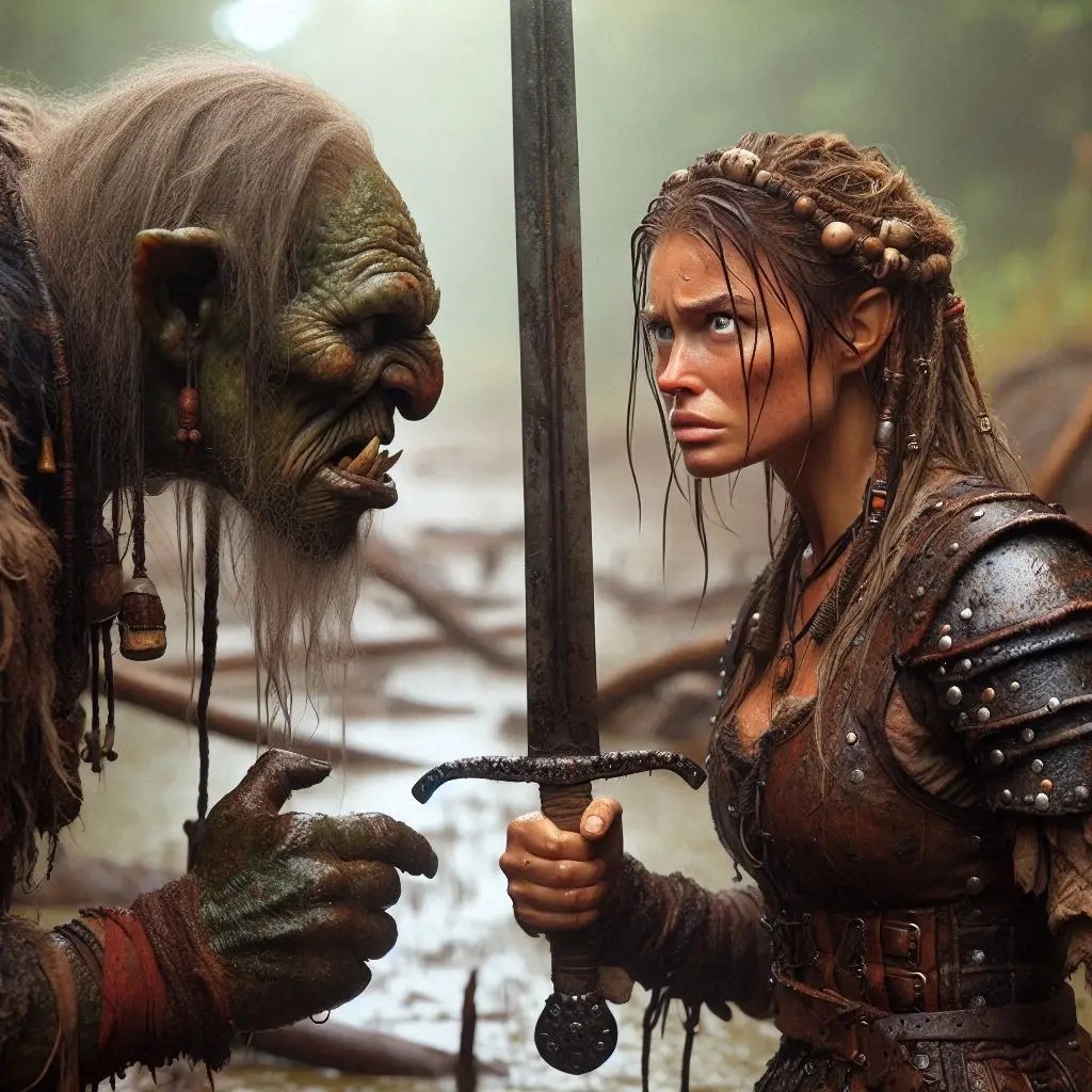 We made it to the Inn, and encountered a furious older woman. She said a couple of hobgoblins just outside the wall had taken some family heirloom ring from her. Bull really hates this sort of bullying, and I saw the look of the righteous guardsman come over his face. “We will get it for you ma’am.”