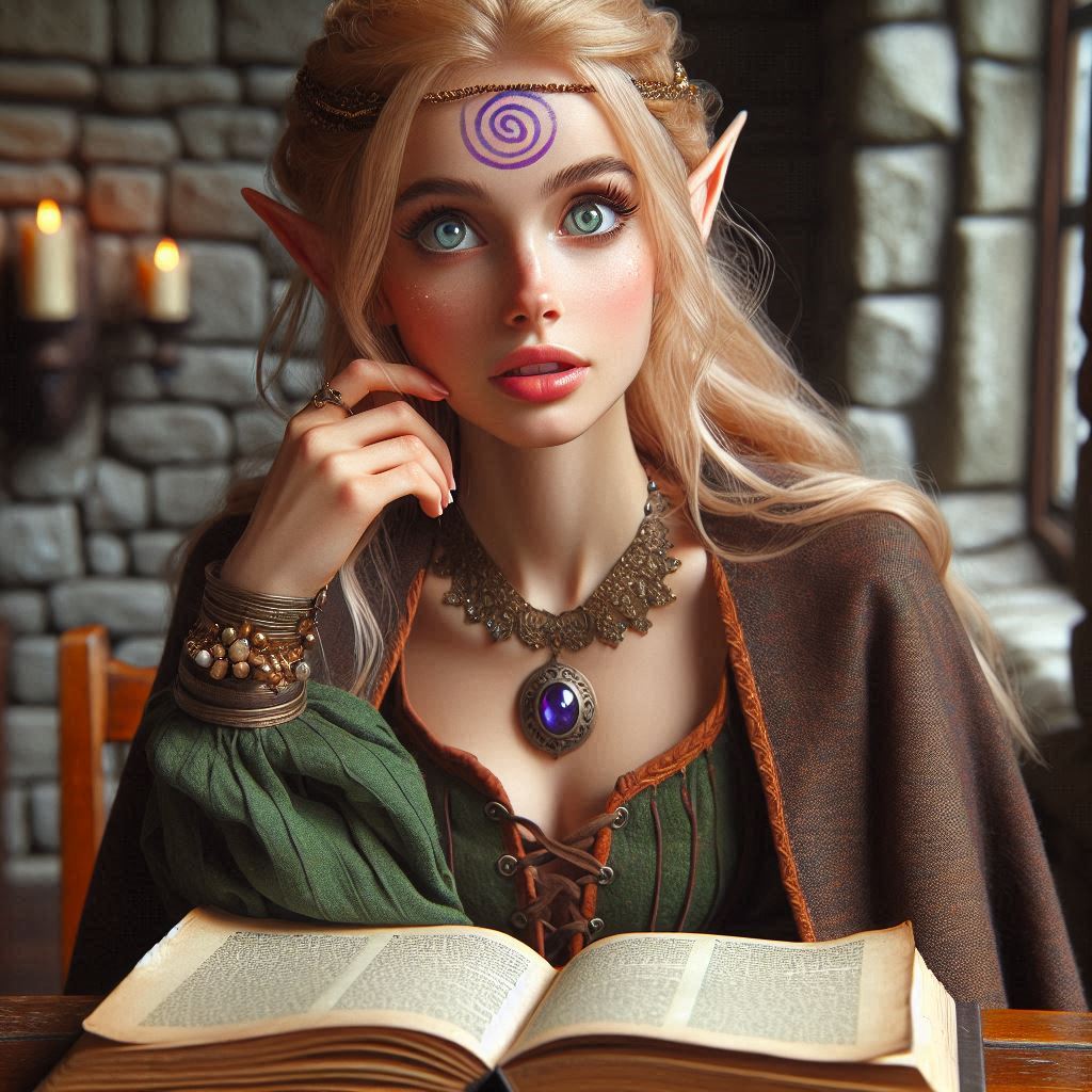 And as it turns out she loves reading and learning. Which is a good thing for growing up in the greatest library of the Realms, and not even being allowed to travel or leave.  She chafes under this a little, but she figured out many years ago that her father has a good reason for this. She doesn’t know what it is, and she does wonder sometimes. Her best guess is that Gorion has powerful enemies. She knows he is connected to the group known as Harpers.  Oh so secret. She’s not supposed to know this. But again, she isn’t stupid.