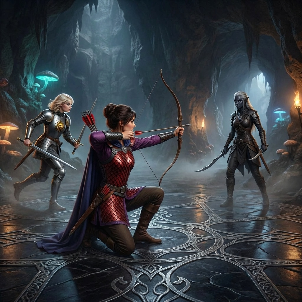 I started by doing new “photo-realistic” renders with SeeDream of all the characters on my team. My first attempt at putting them in one portrait showed them all looking way too much alike. It was consistent on the *details* I mentioned, but the basic facial model seemed to be the same on all of them. So I reconsidered, and did new generic character renders with both DALLE and MAI-Image. This got a little more variety in characters and facial types. This helped, although I still find when you mash them all together with SeeDream it forces some conformity. Looking at the portraits I posted, well let’s just say Gabby and Imoen sure look like sisters! And Skie may be a cousin! Aerie has a slightly different face.