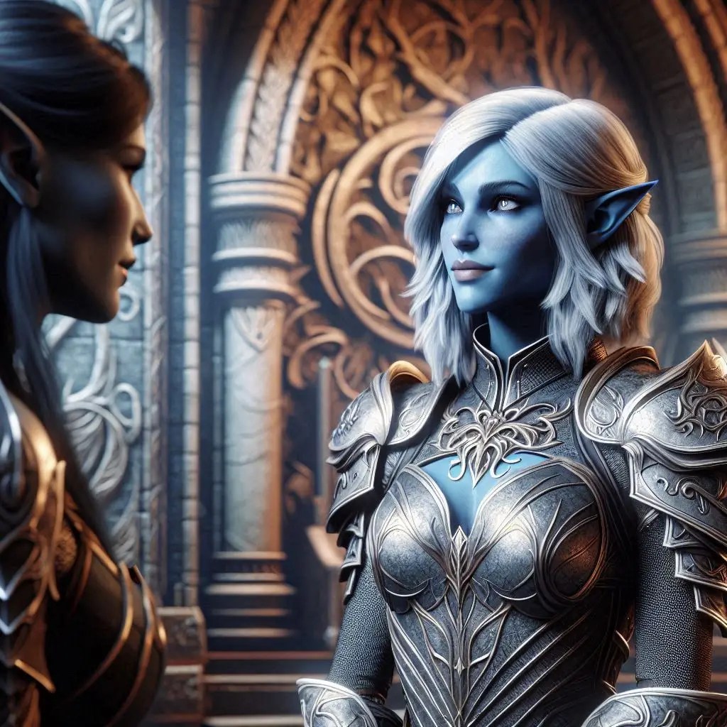 Big thing this time, I’ve been playing more with OpenArt, the newest Renderer (SeeDream 4.5) is brilliant. Possibly superior to DALLE-3 in most ways? Some renders (like the solo of Keldorn and the second Valygar) were just done from text like DALLE-3. I even used Zeno_42’s written descriptions from his website for the characters (backgrounds are on me). But SeeDream has a significant twist. It allows for adding multiple reference images. So that image of Imoen and Aerie is from previously done renders in DALLE, then describing a scene for the two together. I don’t know yet what the limitations of this might be, can I reference (Character 2) shakes hands with (Character 4) while “(Character 1) and (Character 3) snicker behind their backs, standing in (Setting 1)? It says you can add up to 14 images of characters, settings, items. This could get very exciting. And complicated…