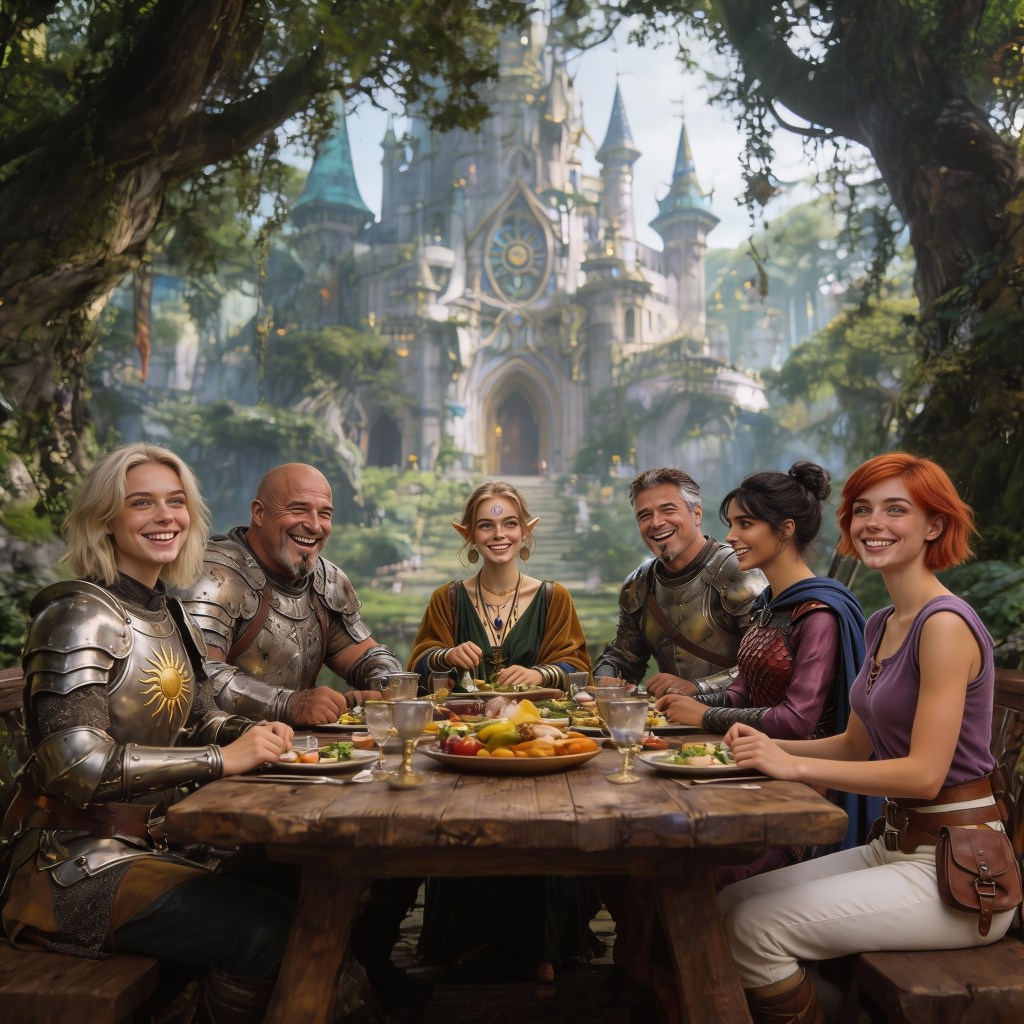 This is another set of renders done entirely with SeeDream. That really is an amazing tool. I’ll say its easy, although the process can get involved. Often it involves creating new renders of several characters (to get their clothes, emotions, postures right). I use my range of Renderers for this, mostly DALLE and SeeDream. Then I use SeeDream to put the elements together. Sometimes tweeking is required to get positions and details right. Putting the whole team together is fussy even with six character renders. But this is all *doable* in a way it wasn’t for me just a month ago.
