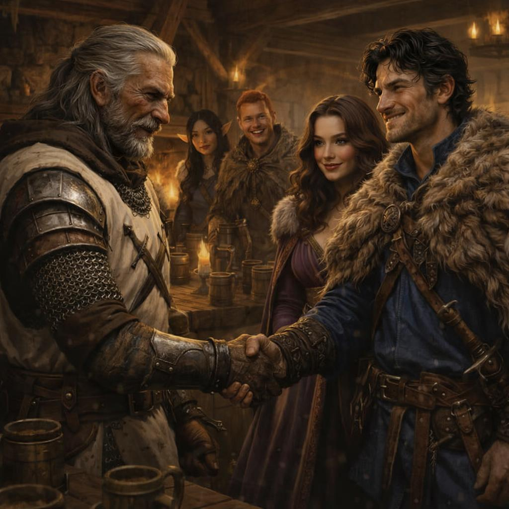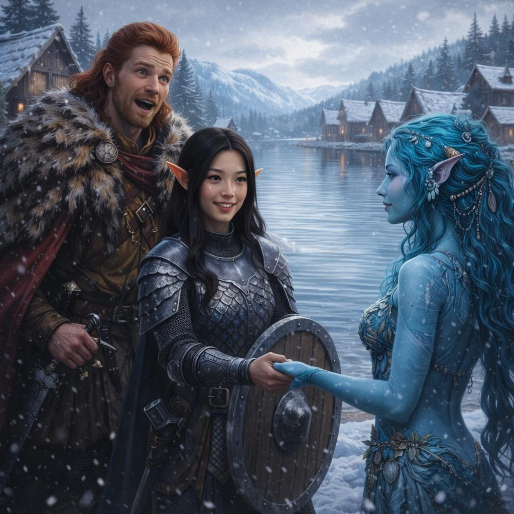 We entered the small frozen town and discussed where to head, it seemed a rustic tavern had some activity. It might be a good place to get some information and see where we could find this “Hrothgar.”