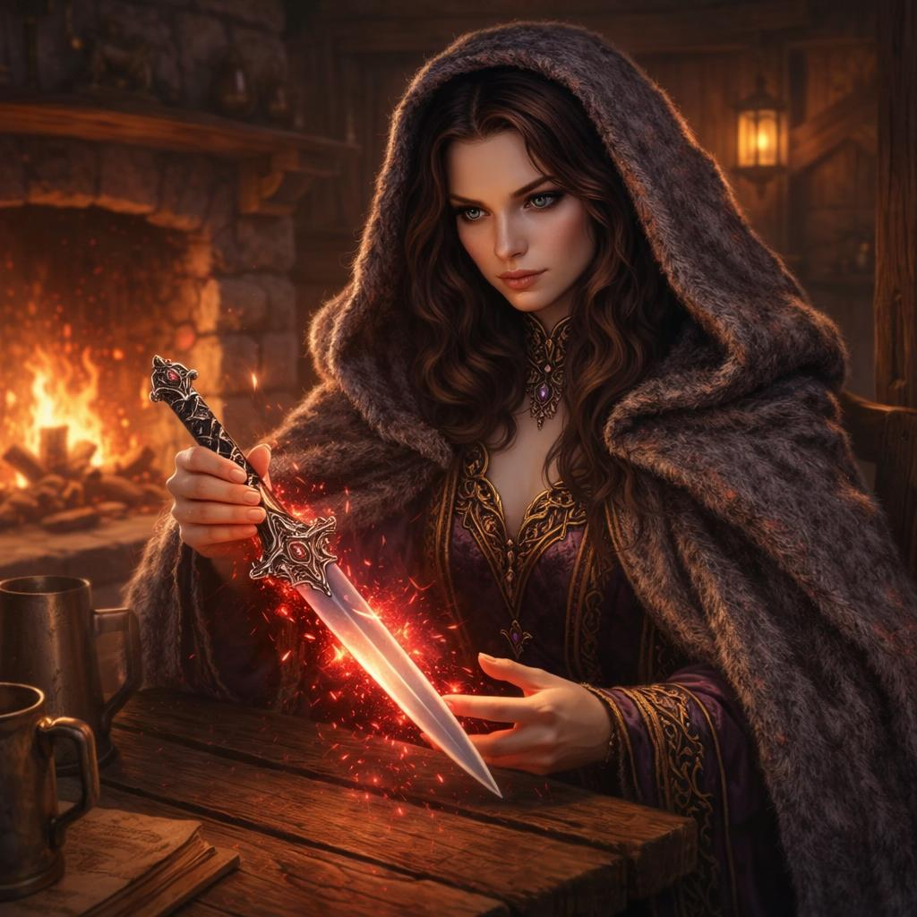 Psyche used her magic to identify a really fine dagger we found in the orc’s lair.