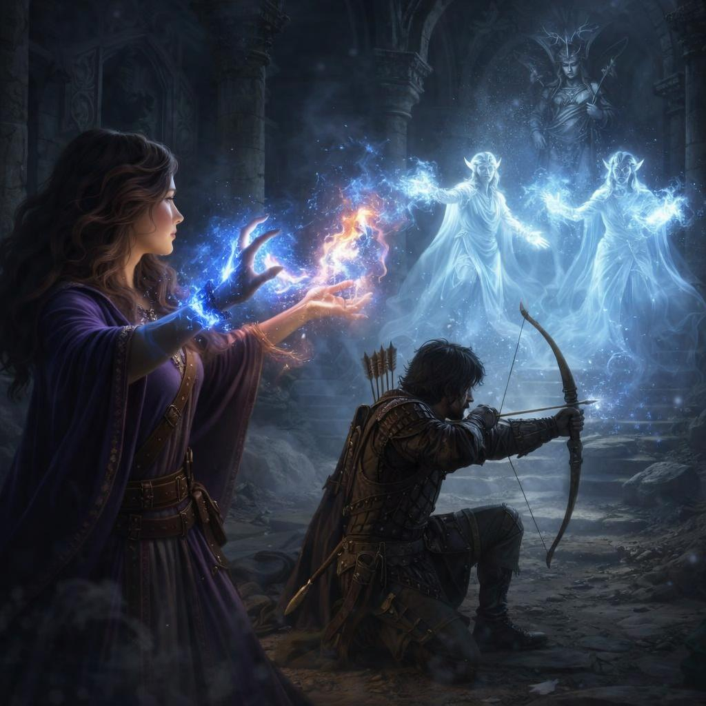 We knew the story, the specters of the elves and orcs who battled here ages ago, still battled in the ruins without pause. And we needed to find an ancient elven mage named Larrel.